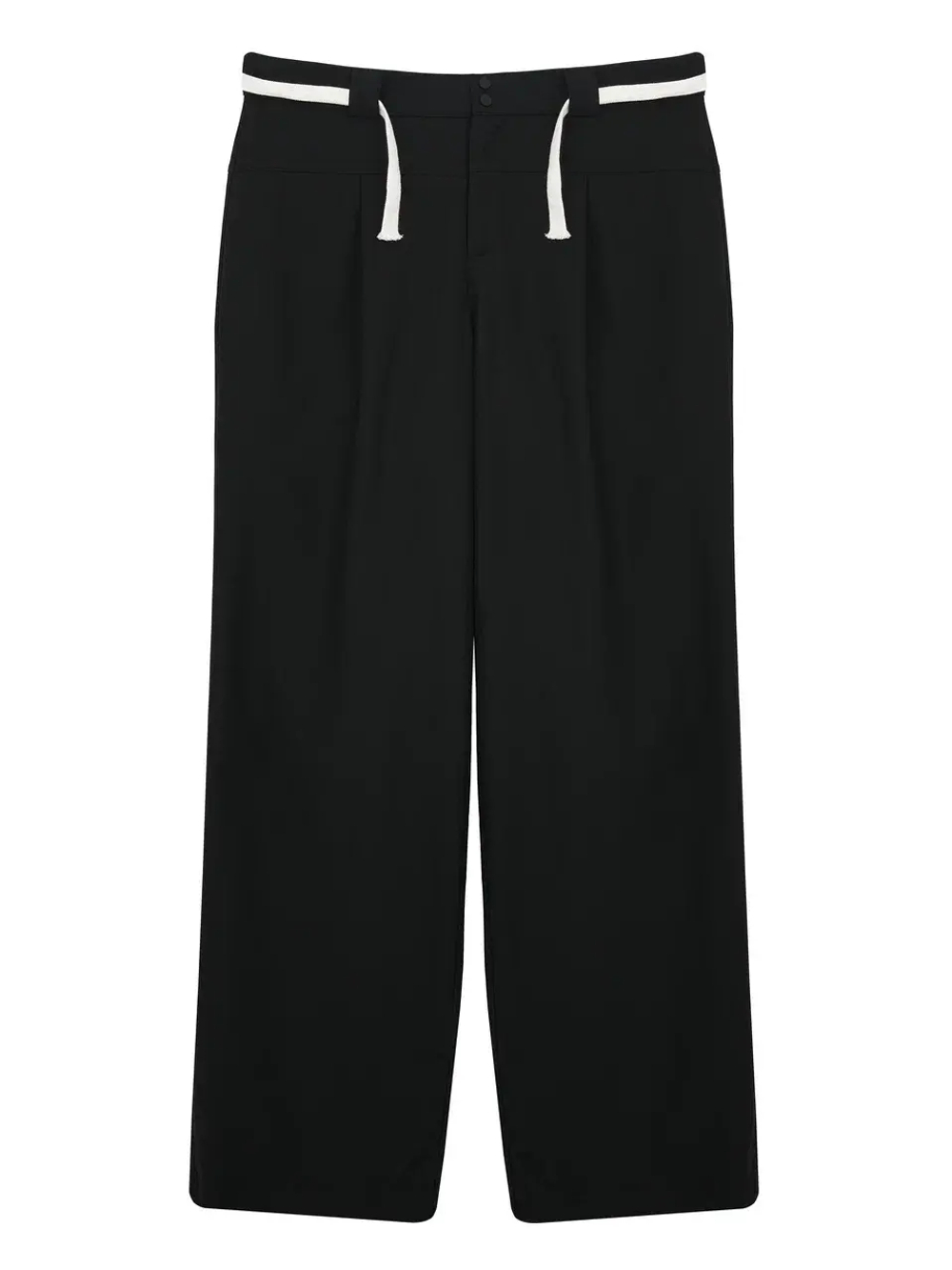 По низу брюк расположена кулиска с продетым шнурком, для затягивания низа изделия.