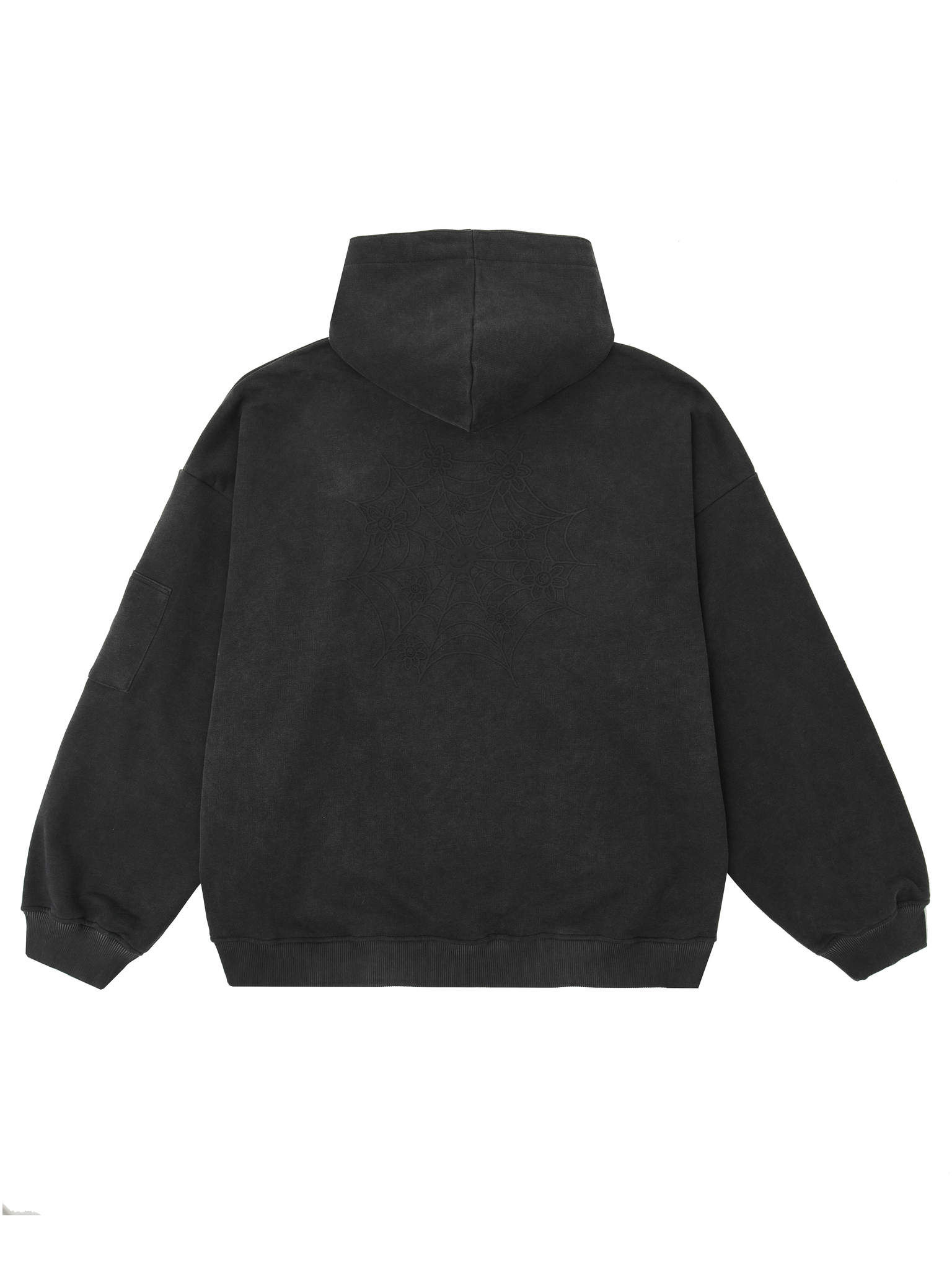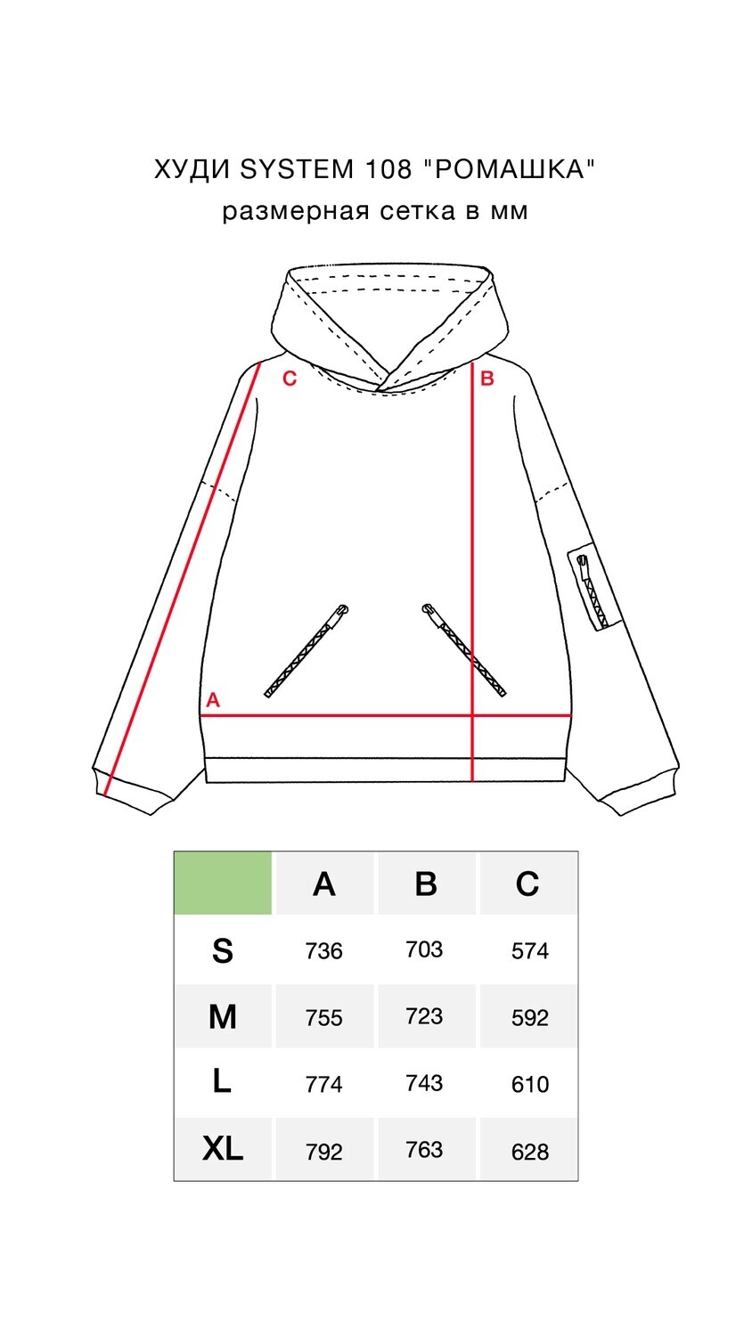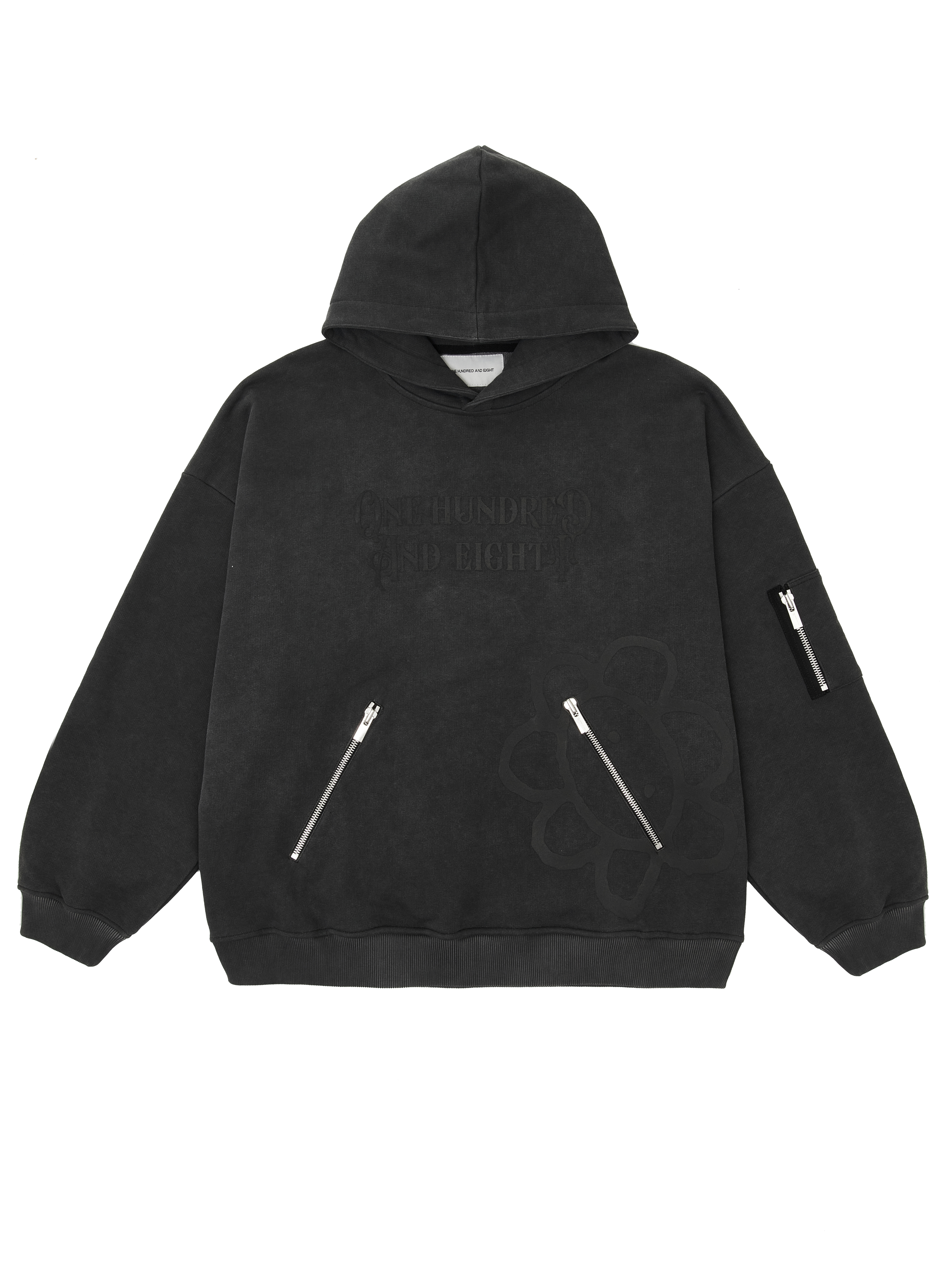 Изделие выполнено из толстого хлопкового футера плотностью 490 г/м² с использованием премиальной японской фурнитуры и декорировано сложной шелкографией в крой. Все замки молний имеют фирменную гравировку (108).