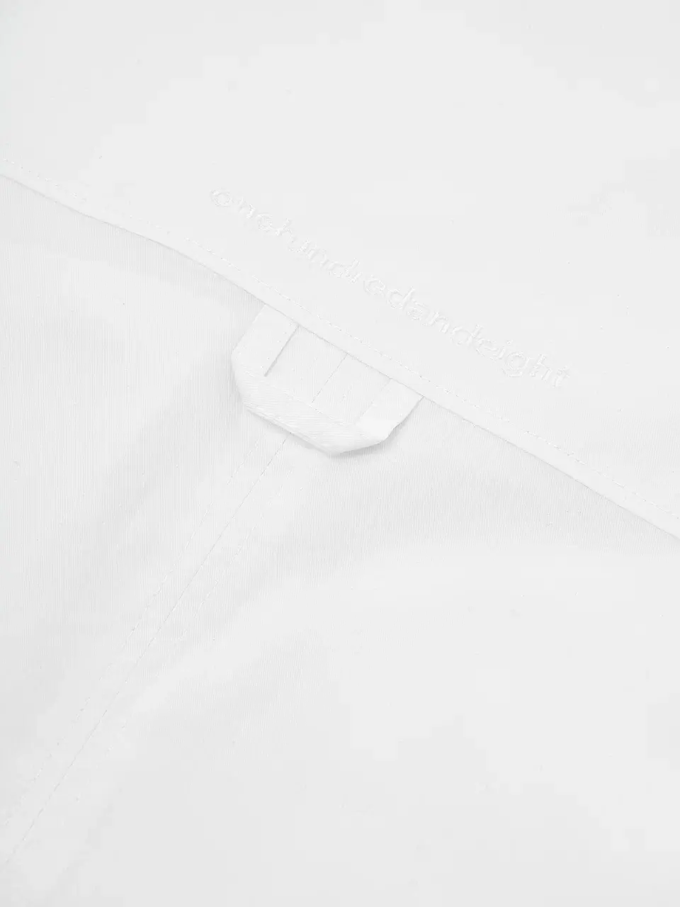На манжетах и воротнике рубашки расположена застежка на петле и пуговице, где пуговицы выполнены с фирменным логотипом бренда.