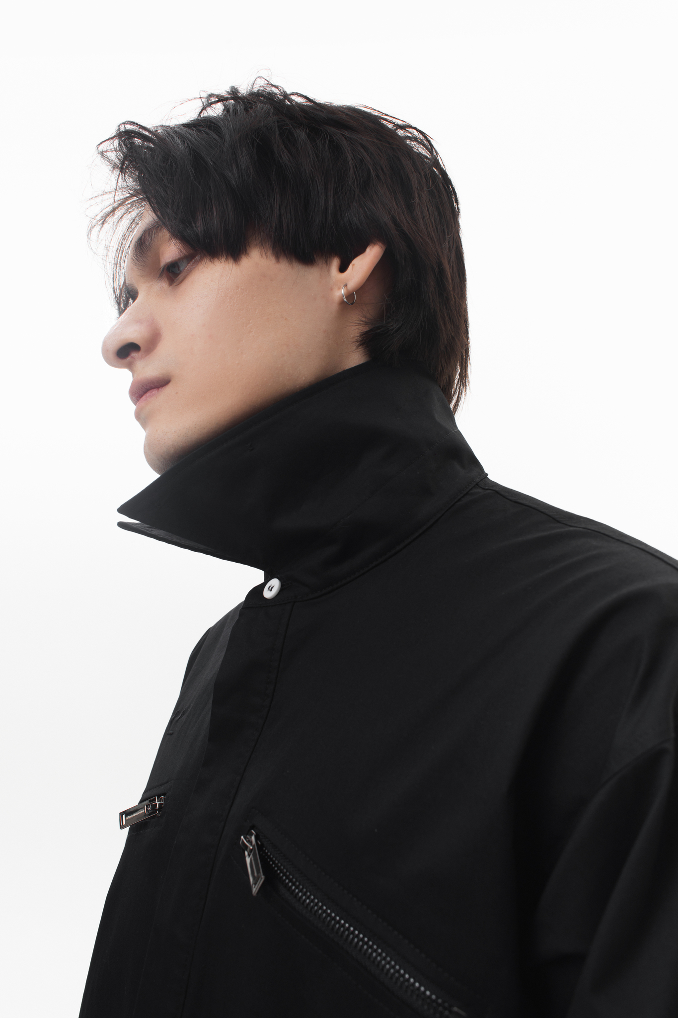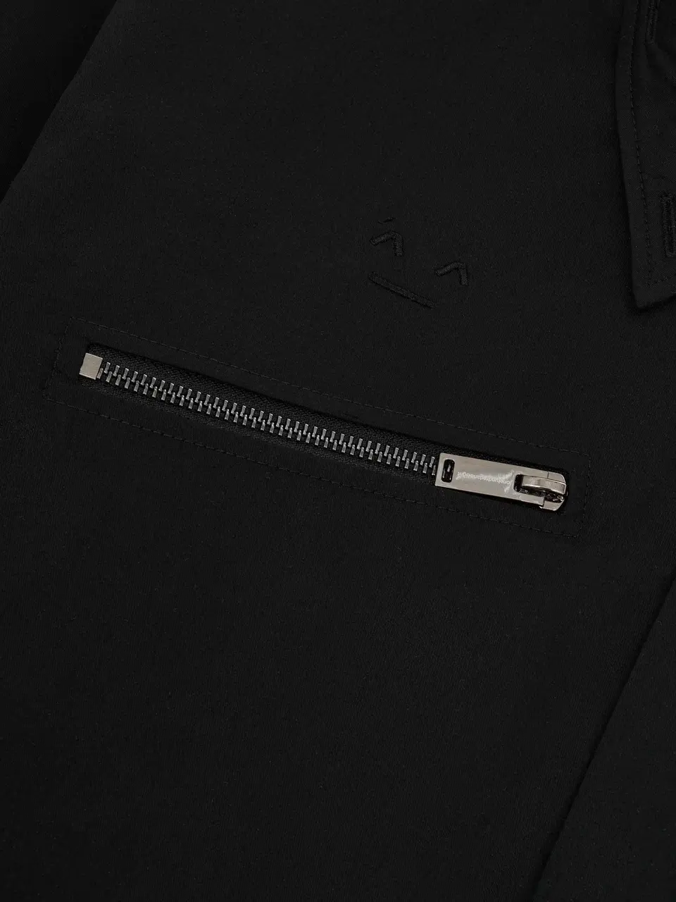 На воротнике расположена застежка, благодаря которой его можно носить стоячим.