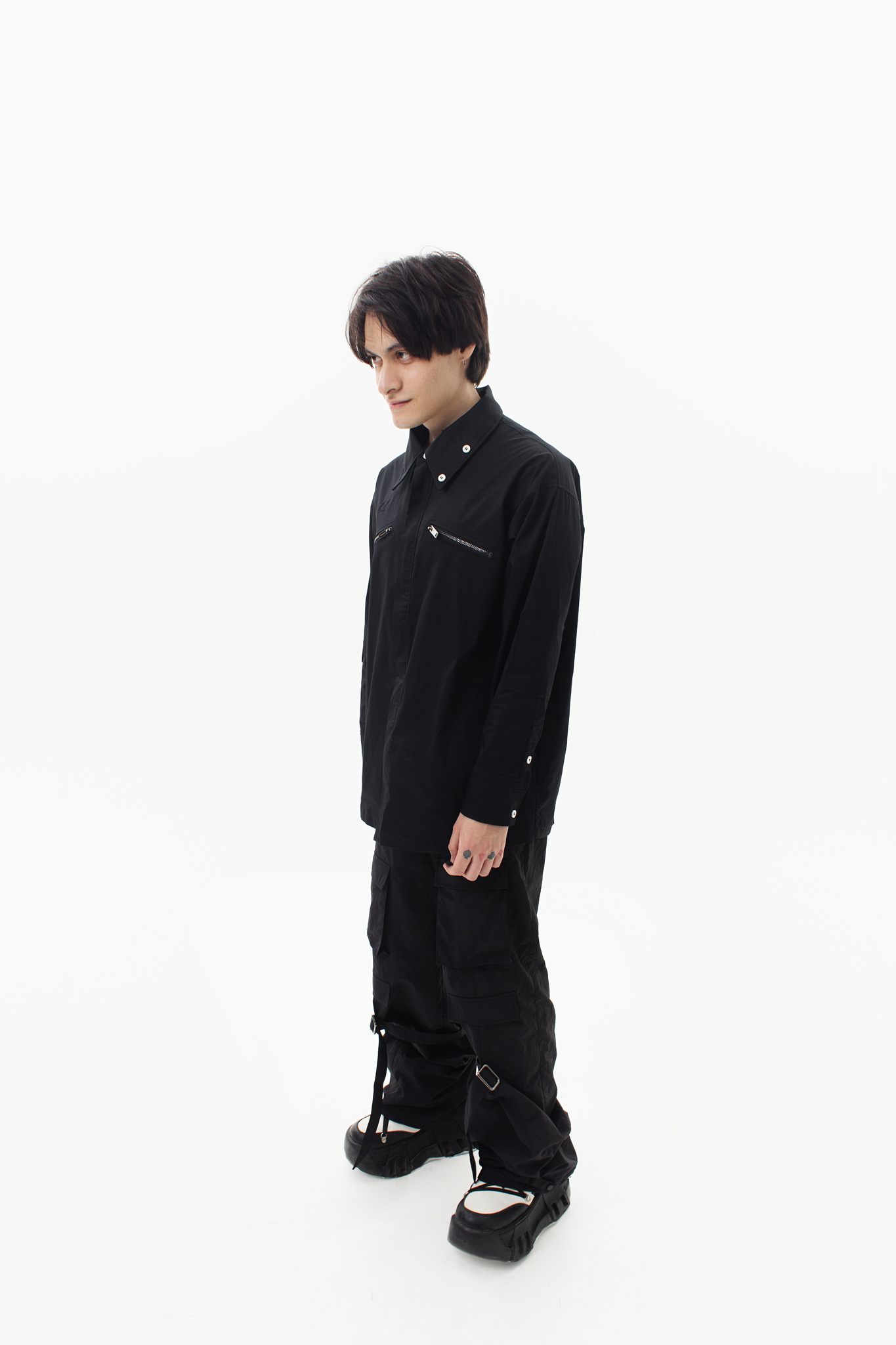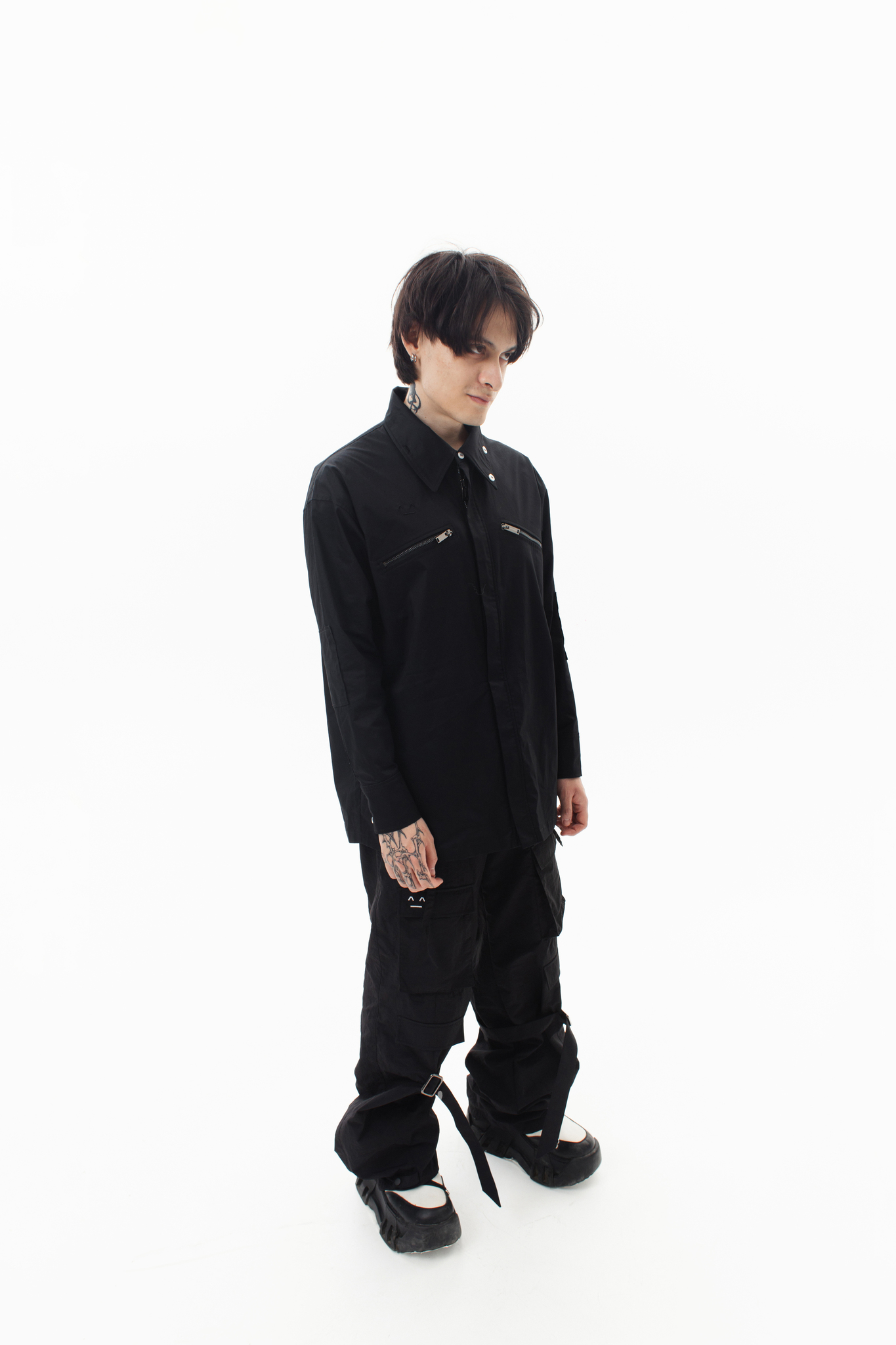 Рубашка, выполненная из плотного стопроцентного хлопка на застежке молнии с дополнительной планкой. По переду изделия расположены карманы в рамку, на застежке молнии.