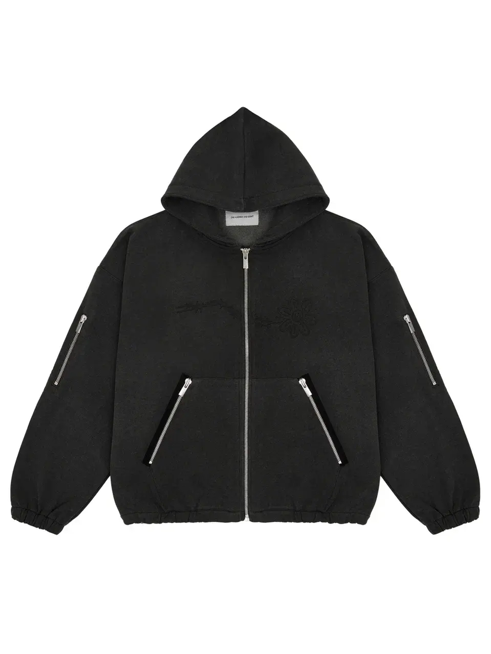 Еще одна вариация популярного крашеного худи - на этот раз зипка, с кармашками на рукавах и фирменной ромашкой от Pechongа.